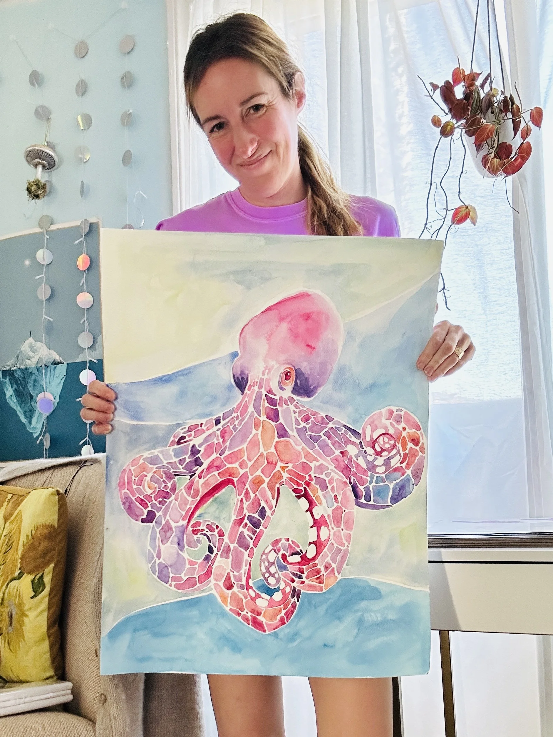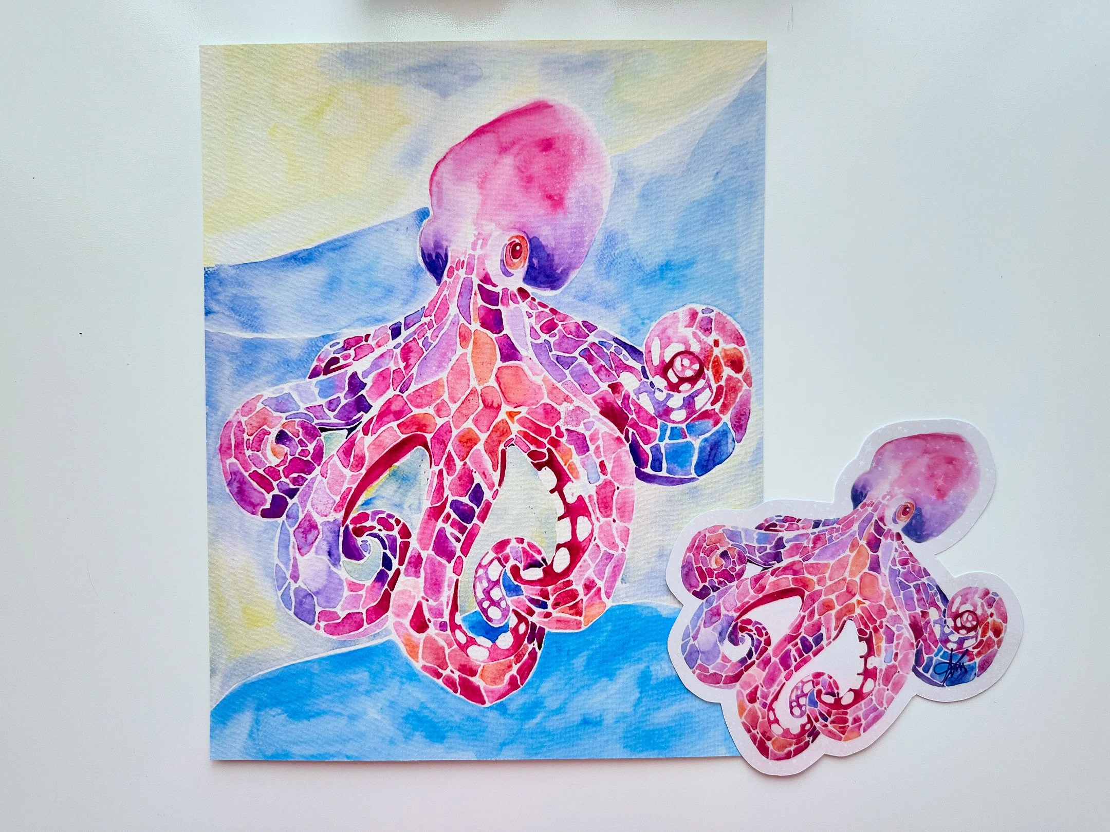 This December I decided to start sticker making from my watercolor art. I painted three watercolor sea creatures with the intention of making them into stickers. How did I do it? I watched a bunch of videos on sticker making, collected supplies, and tested out the products. I even bought a new printer to get this process to work. When I set out on this adventure I would find videos and blog articles about making stickers, but nothing comprehensive enough to cover all the bases of how to do this process. I’m sharing blow how I did it and what I discovered.
